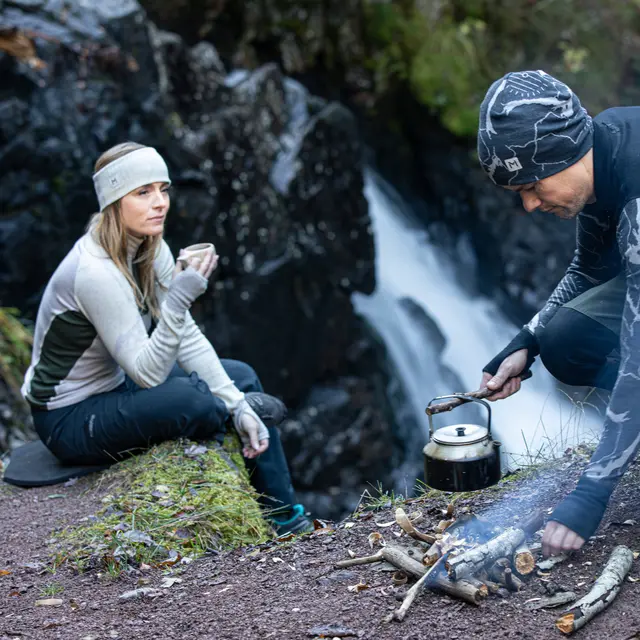 Aclima Lars Monsen Femunden Headband er et elastisk pannebånd i 100 % merinoull med ettersittende passform som egner seg godt under hjelm. Sydd med flate flatlock-sømmer for å unngå at det gnager. Mønster er inspirert av Femunden som er området der Lars Monsen holder til.