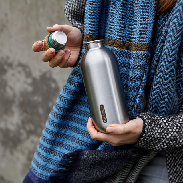 Black+Blum Steel Bottle 600 ml er en lett drikkeflaske i rustfritt stål. Kork med bærebøyle. Passer i sykkelflaskeholdere, i koppholder i bil eller i sidelommen. Lekasjefri!