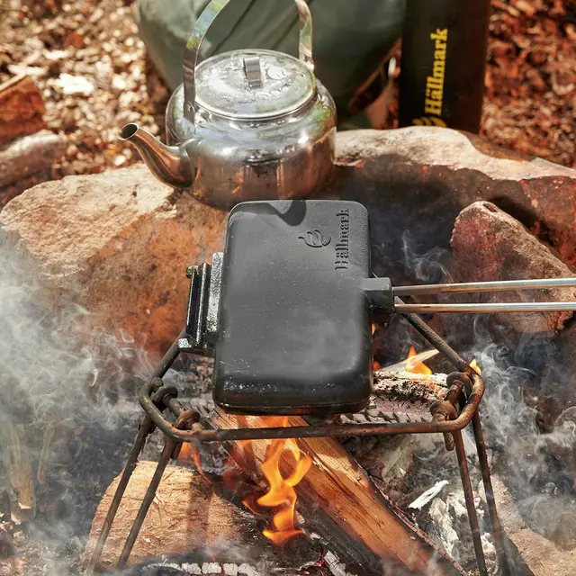 Hällmark Eldställning er et bålstativ for matlaging eller kaffebrygging over åpen ild. Stativet plasseres rett over bålet. Fungerer perfekt med både kaffekjeler, vaffeljern, toastjern, stekeheller og stekepanner. Fleksibel, stabil og sammenleggbar konstruksjon.