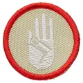 Stingene er brodert på en stoffbit slik at merket får et fin og taktil struktur. Den broderte kanten gjør at merket er lett å sy fast på speiderskjorte, leirbålskappe eller sekk.