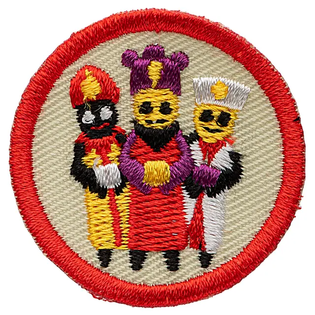 Stingene er brodert på en stoffbit slik at merket får et fin og taktil struktur. Den broderte kanten gjør at merket er lett å sy fast på speiderskjorte, leirbålskappe eller sekk.