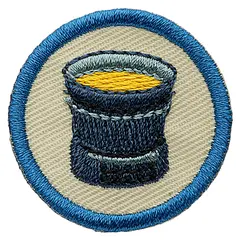 Stingene er brodert på en stoffbit slik at merket får et fin og taktil struktur. Den broderte kanten gjør at merket er lett å sy fast på speiderskjorte, leirbålskappe eller sekk.
