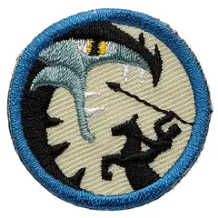 Stingene er brodert på en stoffbit slik at merket får et fin og taktil struktur. Den broderte kanten gjør at merket er lett å sy fast på speiderskjorte, leirbålskappe eller sekk.