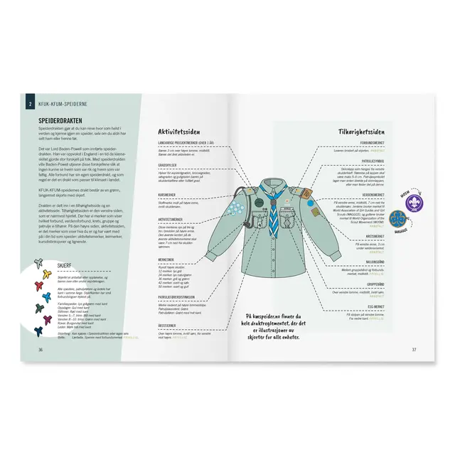 Denne passer til den grønne speiderskjorten til KFUK-KFUM-speiderne. Det er to speiderforbund i Norge. Det andre forbundet bruker grå speiderskjorter og heter Norges speiderforbund.