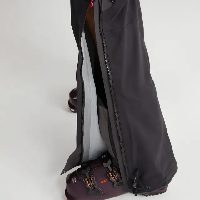 Klättermusen Skade 2.0 Salopette er en lett toppturbukse laget for aktiviteter som krever fleksibilitet. Selebuksa kan tilpasses bruk med klassiske langrennsko, randoneestøvler og skistøvler. Materialet i buksen er Klättermusens eget 3-lags Cutan, som gjør den helt vanntett, fluorkarbonfri og biobasert. På begge sidene er det en hel-lengde to-veis glidelås for enkel tilgang, ventilasjon eller en raskt toalettbesøk. Midjen justeres med en elastisk quick release-konstruksjon foran og bak og et innvendig elastisk bånd for god passform. Salopettes-delen er laget av et mykt elastisk materiale med svært gode fukttransporterende egenskaper. Foran er det et lomme med glidelås til verdisaker. Ved høyre lår er det en benlomme med glidelås med fleksibel plass til mobil på innsiden. Nederkanten til buksene er forsterket med Aramid-stoff. Den perfekte turkameraten til skieventyret. Disse buksene tilbyr kompromissløs funksjonalitet og beskyttelse i vertikalt terreng.