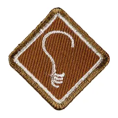 Stingene er brodert på en stoffbit slik at merket får et fin og taktil struktur. Den broderte kanten gjør at merket er lett å sy fast på speiderskjorte, leirbålskappe eller sekk.