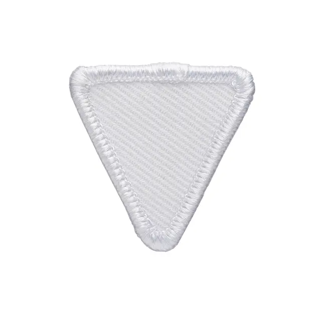 Stingene er brodert på en stoffbit slik at merket får et fin og taktil struktur. Den broderte kanten gjør at merket er lett å sy fast på speiderskjorte, leirbålskappe eller sekk.