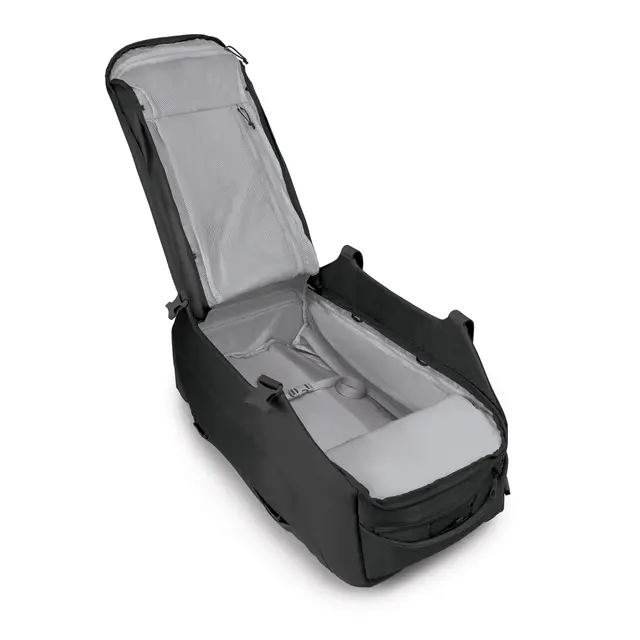 • Ospreys ikoniske StraightJacket-kompresjonsstropper med polstrede sidevegger er et fleksibelt og sikkert alternativ for å beskytte innholdet og holde lasten under kontroll. Når bagen ikke er helt fylt, komprimeres den til en mindre størrelse.