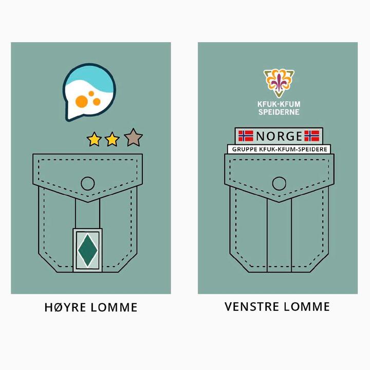 Semestermerkene festes på høyre erme, sammen med aktivitetsmerkene. Det blir finest om du har litt luft mellom merkene. Den beste plasseringen av merkene kommer an på størrelsen på skjorta di, men kan for eksempel være tre og tre merker i bredden, over eller under aktivitetsmerkene.